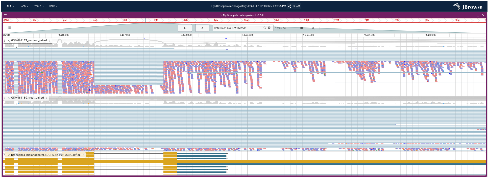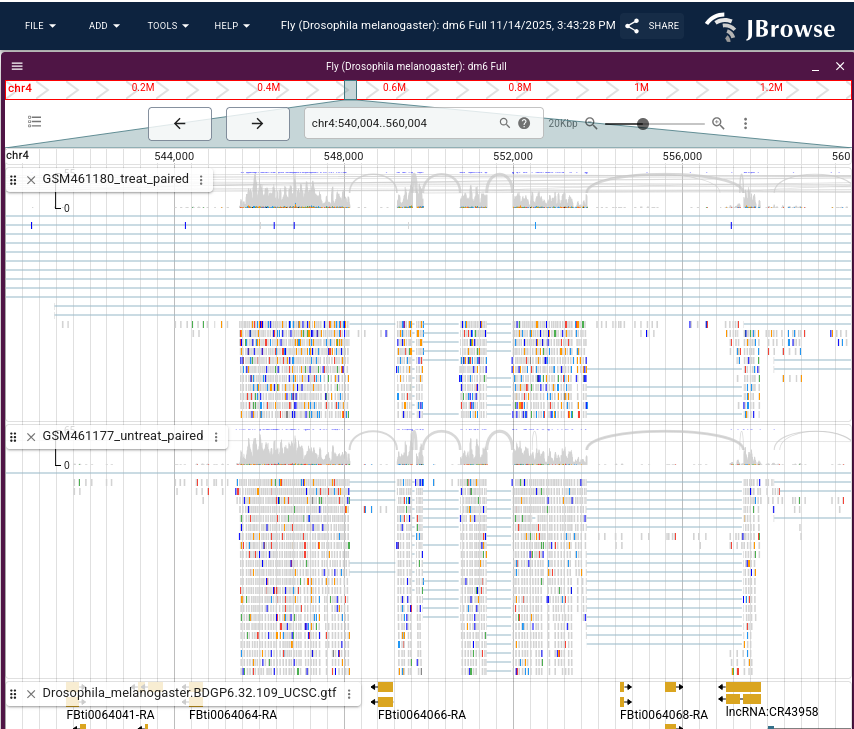 In the study of Brooks et al. 2011, the authors identified genes and pathways regulated by the Pasilla gene (the Drosophila homologue of the mammalian splicing regulators Nova-1 and Nova-2 proteins) using RNA-Seq data. They depleted the Pasilla (PS) gene in Drosophila melanogaster by RNA interference (RNAi). Total RNA was then isolated and used to prepare both single-end and paired-end RNA-Seq libraries for treated (PS depleted) and untreated samples. These libraries were sequenced to obtain RNA-Seq reads for each sample. The RNA-Seq data for the treated and the untreated samples can be compared to identify the effects of Pasilla gene depletion on gene expression.